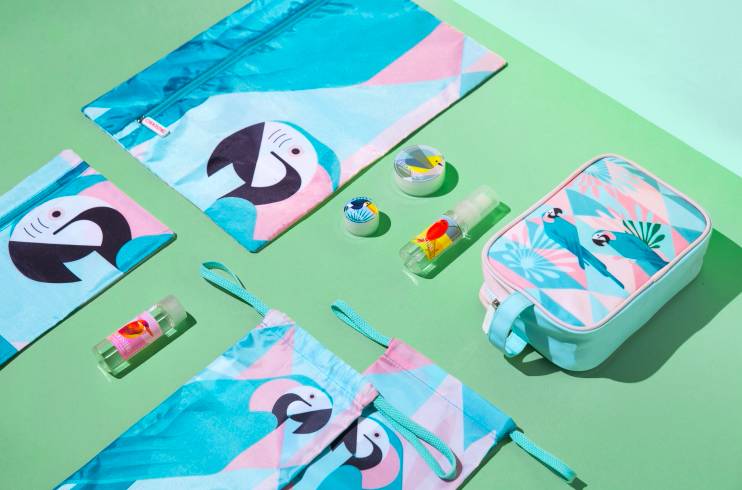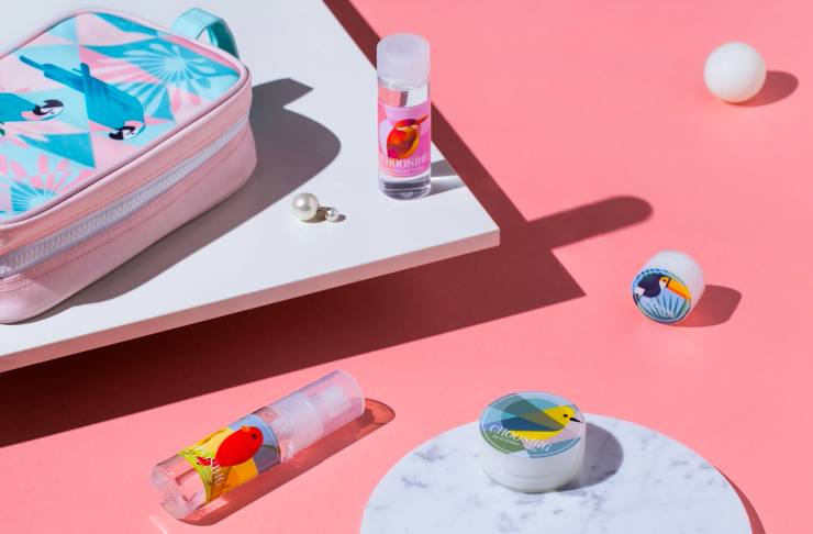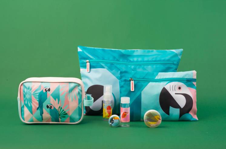 這款“Early Bird早鳥(niǎo)系列”出行收納套裝,一共包含了一款護(hù)膚包、一款大收納袋、一款小收納袋、一款鞋袋、兩只分裝瓶及兩只分裝盒。