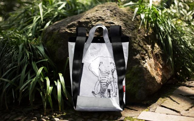 以大象為靈感設(shè)計(jì)的杜邦紙背包